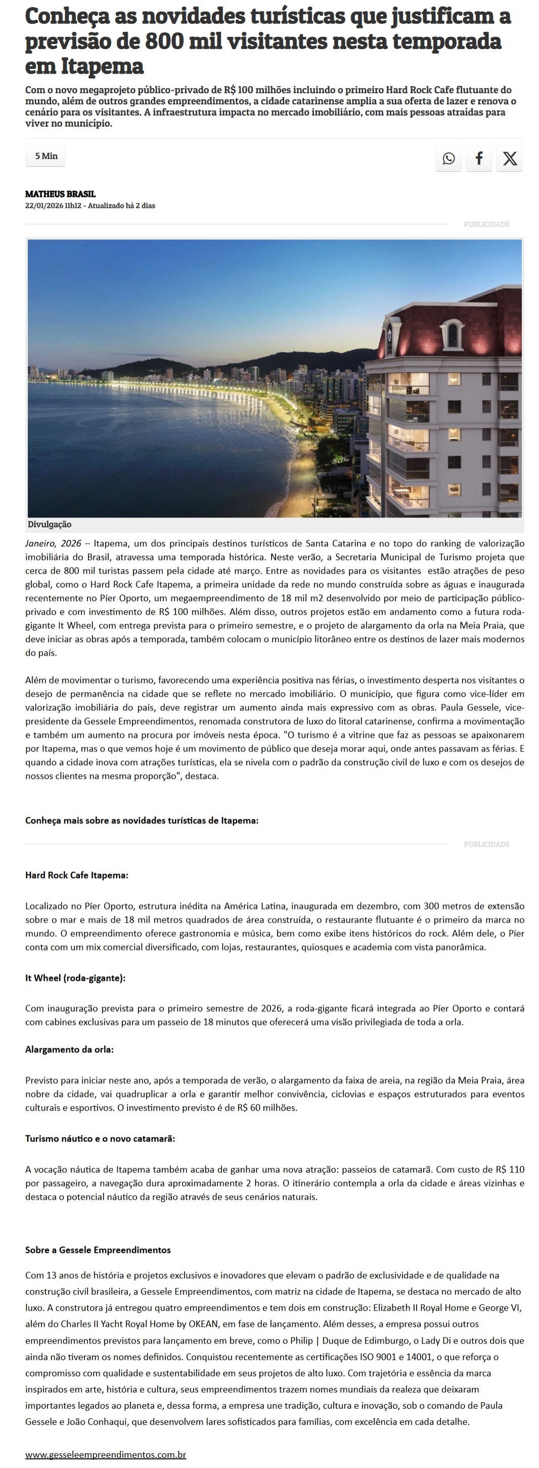 ?Conheça as novidades turísticas que justificam a previsão de 800 mil visitantes nesta temporada em Itapema